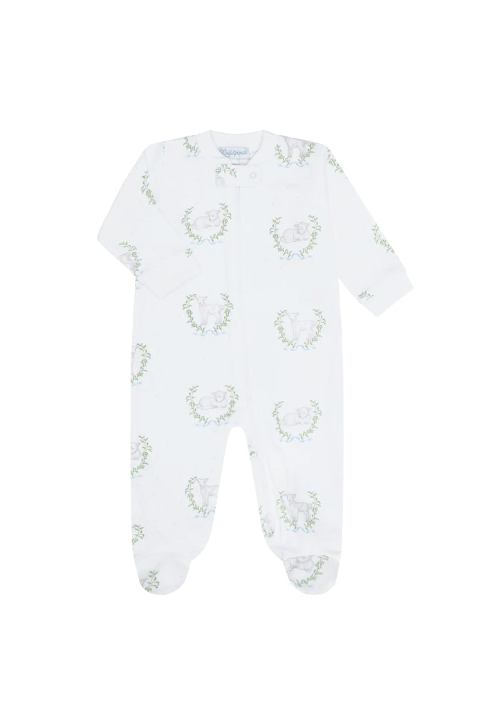This Blue Lamb Zipper Footie has all the good characteristics that can elevate your baby’s comfort. This cute footie has a lambs imprint design with an adjustable zipper lock that enables you to put on and take off the outfit easily. Made with 100% Peruvian Pima cotton fiber, this footie is moisture-wicking, durable, and has optimum stretch. This lamb zipper footie gives your baby an elegant look.