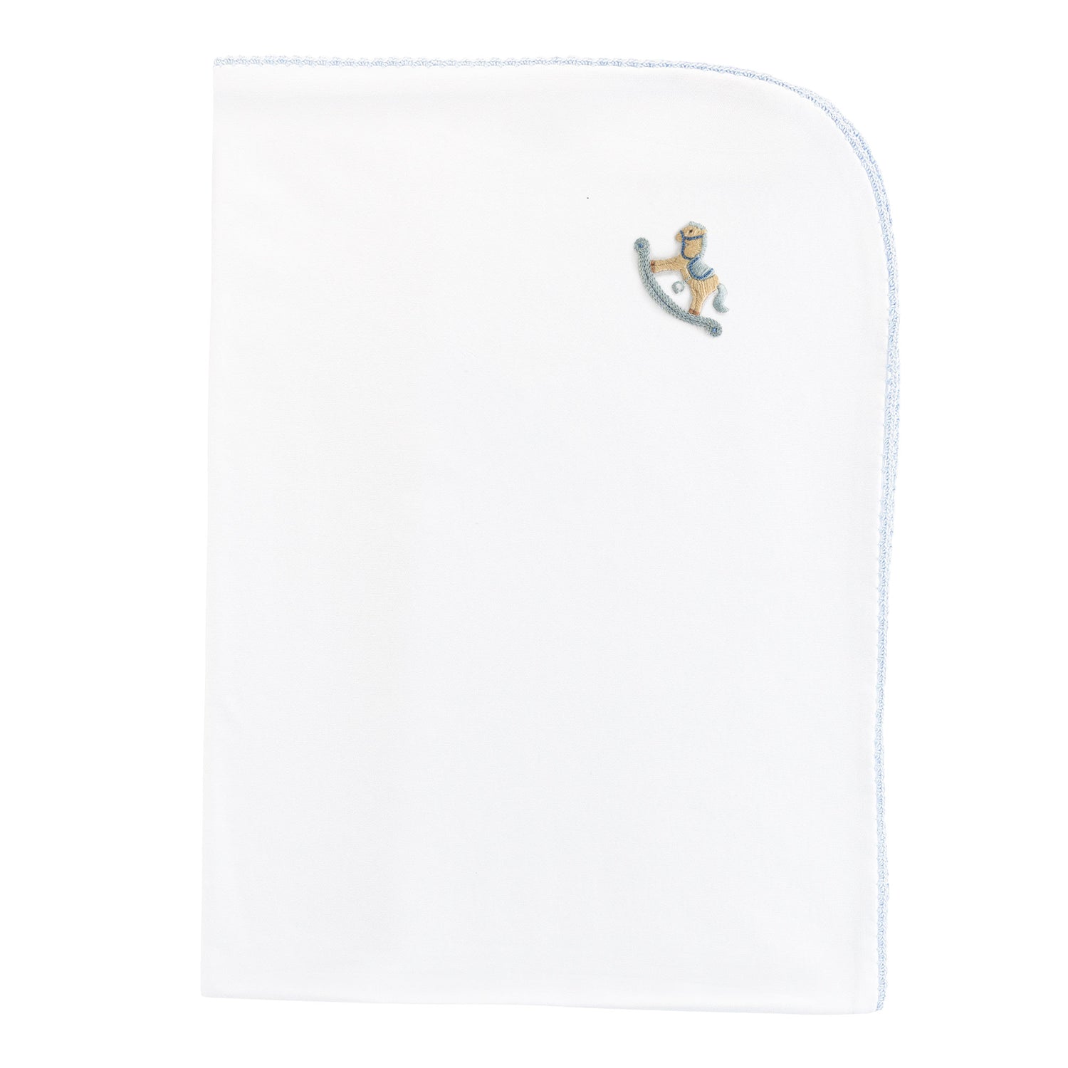 Cute Rocking Horse Embroidered Receiving Blanket with Crochet Trim