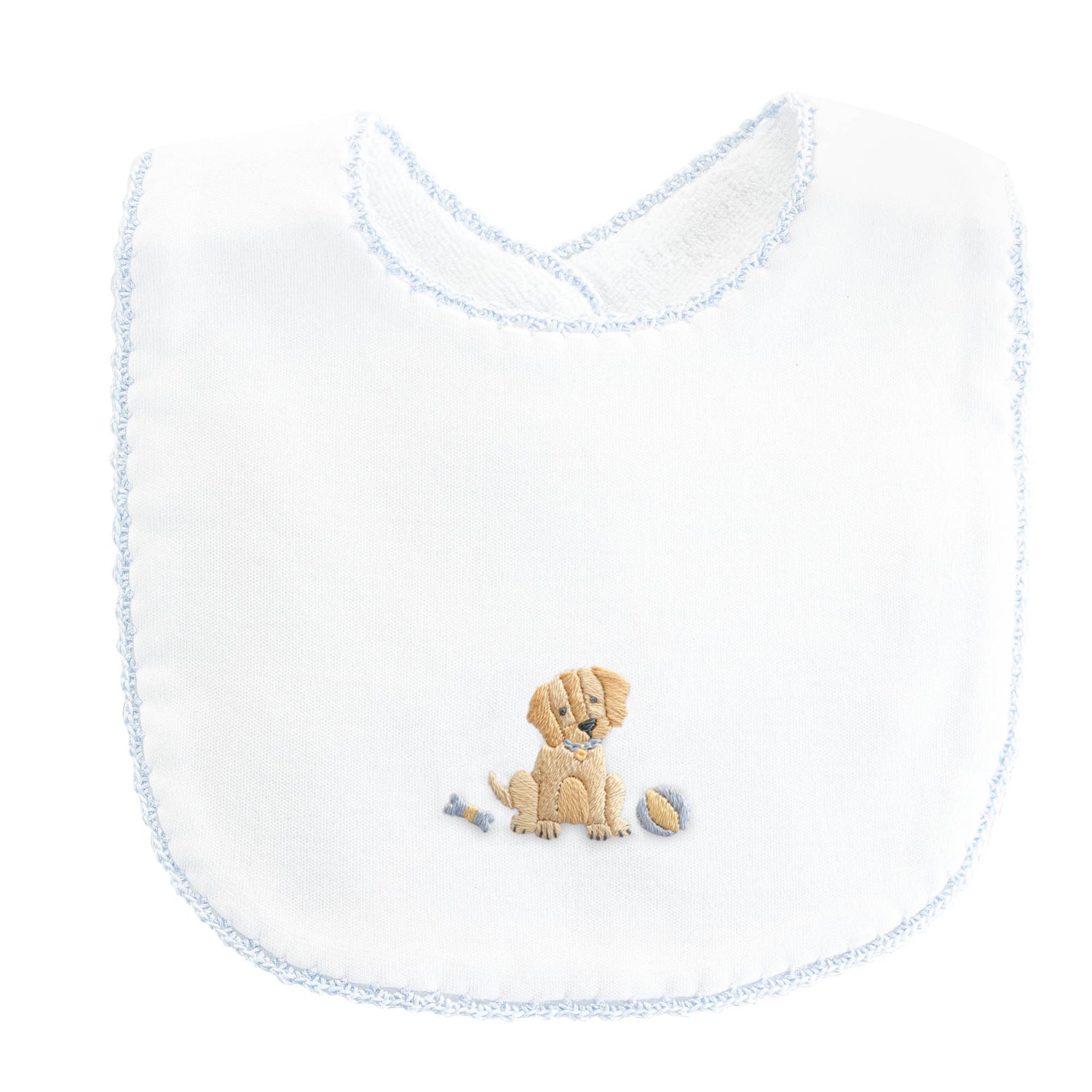 Good Puppy - Boy Bib with Crochet Trim
