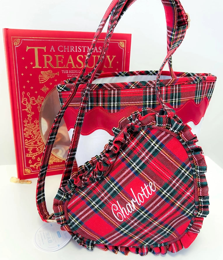 Every little girl-on-the-go needs a go-to holiday bag as sweet and special as she is. With a red plaid heart-shaped body, polished gold heart Bits & Bows logo charm and hardware, matching ruffle trim, adjustable crossbody strap, and wipe-clean lining, it’s a functional, feminine accessory she’s sure to love all season long. A perfect holiday gift to pair with her festive Fall and Winter wardrobe.