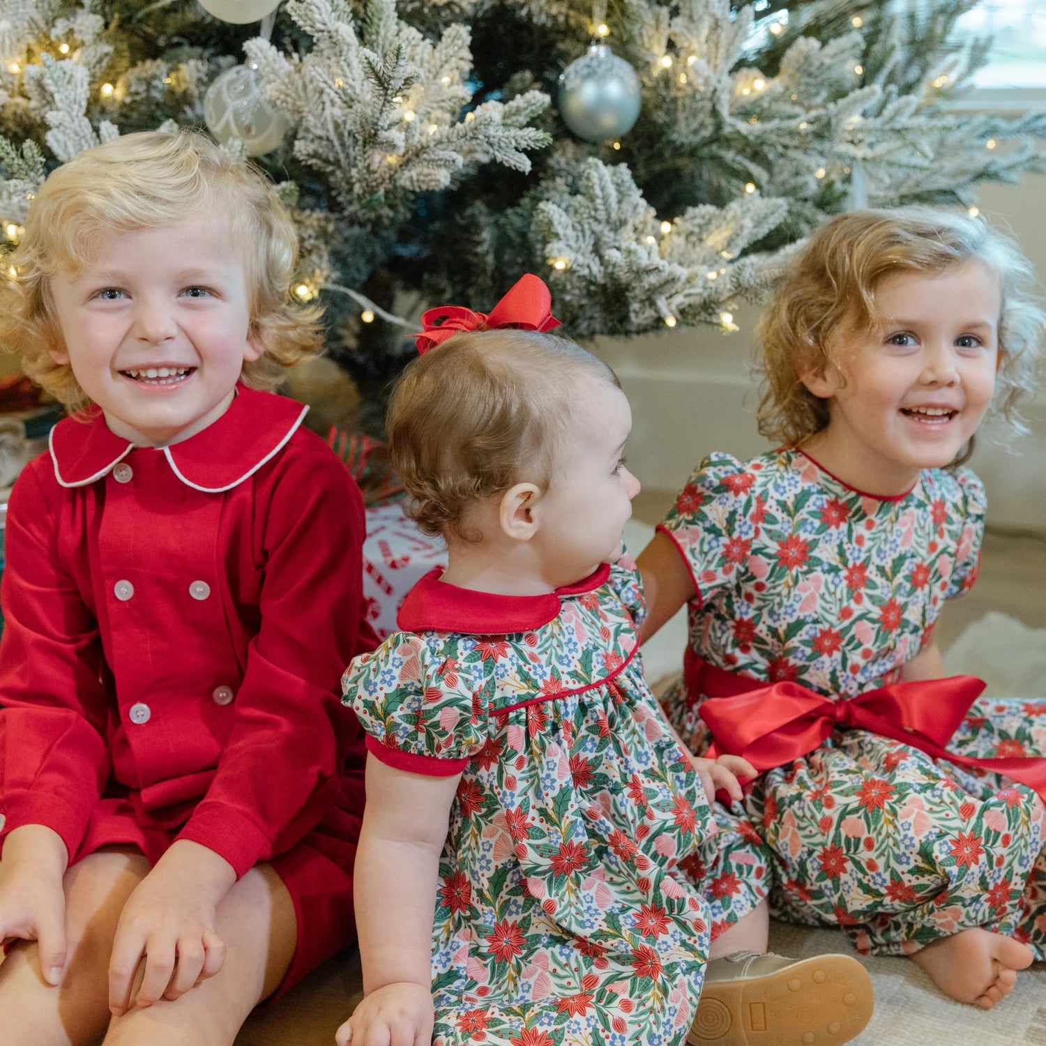 This charming Meadow Dress features a delightful floral print in soft and cheerful tones which is perfect for celebrating the season. With its classic silhouette and gentle gathers along with a super gorgeous bow, it offers comfort and elegance for any occasion. Crafted from lightweight fabric, it’s ideal for special outings or casual gatherings. The timeless design adds a touch of beauty and charm to everyday elegance.