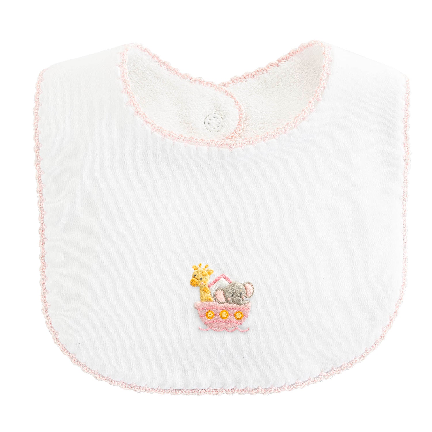 Noah's Ark - Pink Bib w/ Crochet Trim
