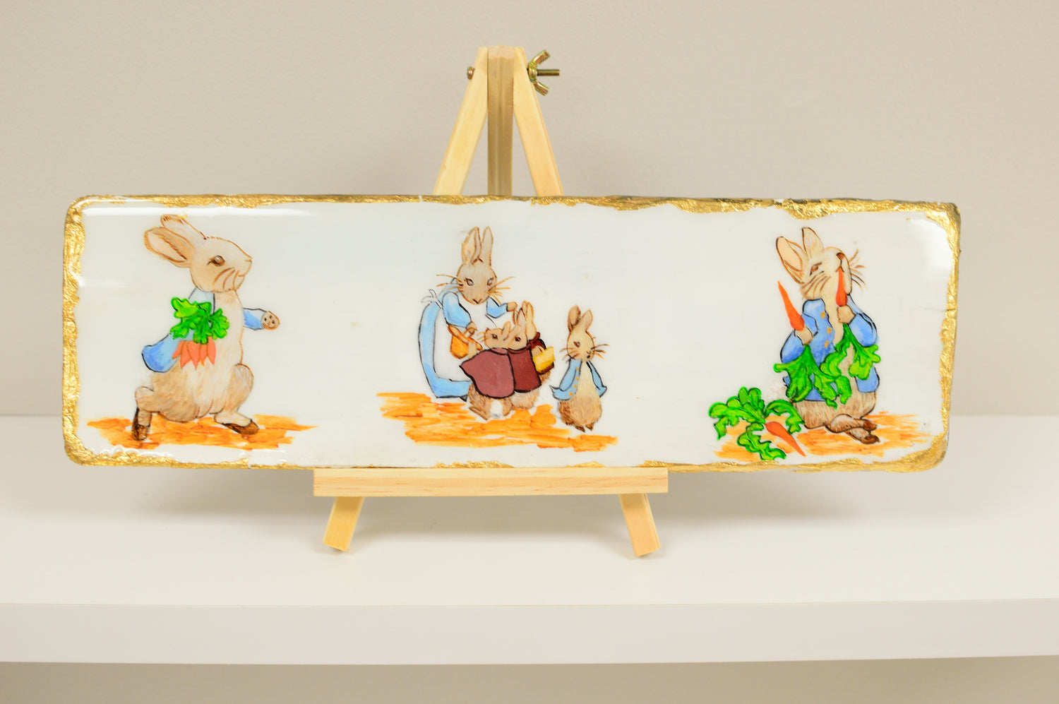 Peter Rabbit on Old Red Wood Shingle - 16" x 5"