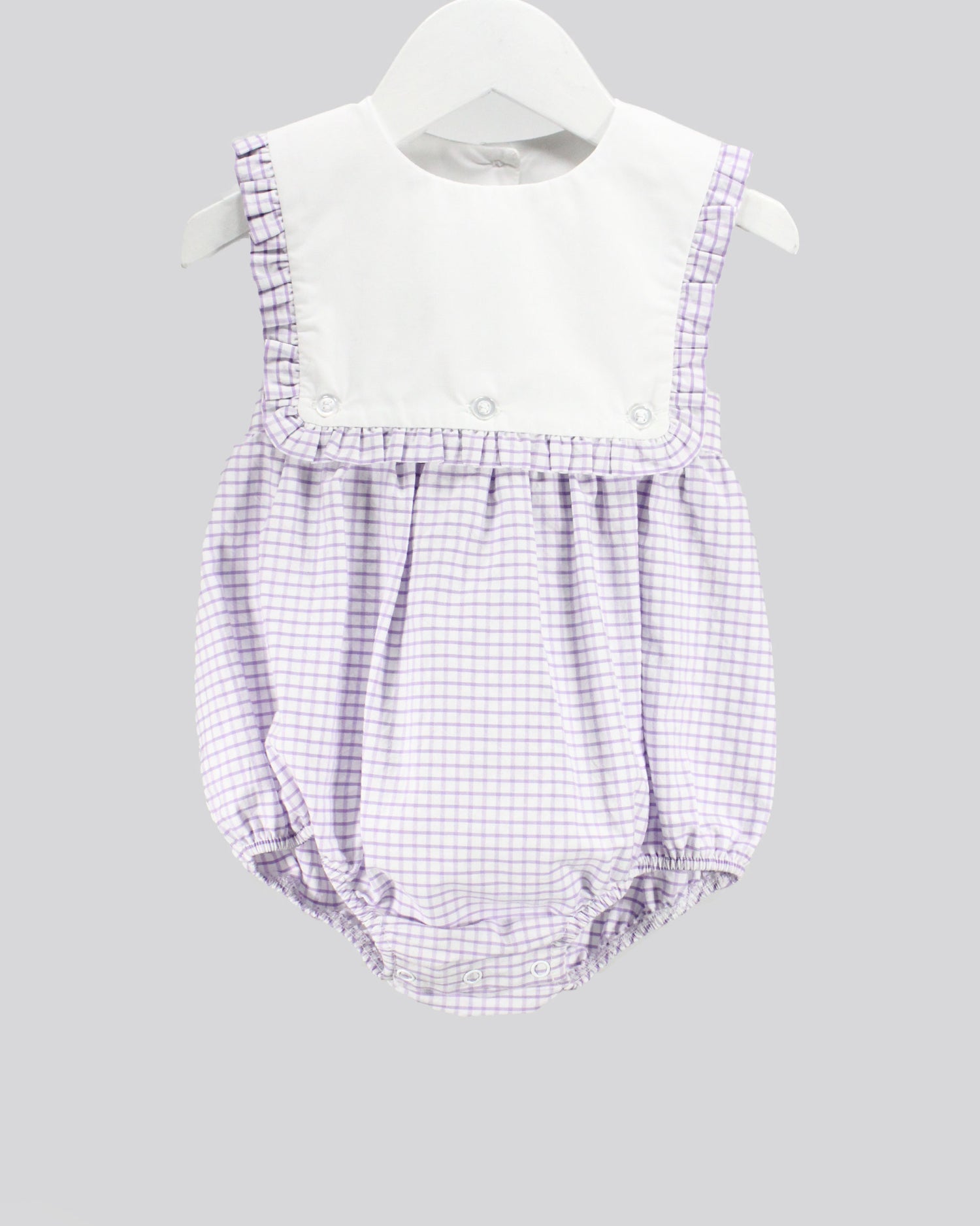 Purple Gingham Blair Bubble: Add a touch of personality to this charming purple gingham bubble with a custom monogram. Perfect for little ones who love standing out, this playful piece combines classic gingham style with the fun of personalization. Whether it's initials or a favorite letter, your monogram makes it uniquely theirs. Soft, comfortable, and ready to make a statement—because every kid deserves something that's one-of-a-kind.