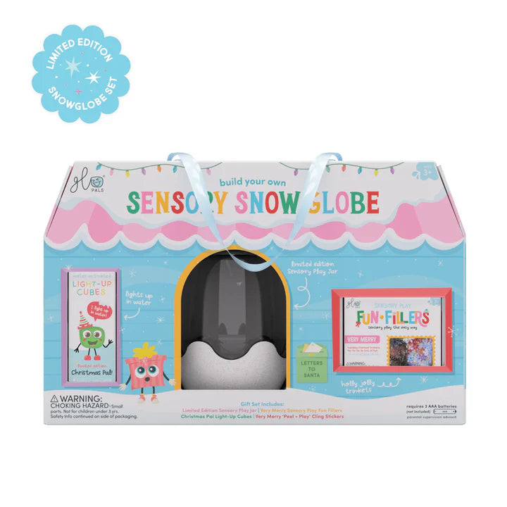 New from GloPals! This Snowglobe bundle includes the Limited Edition "Snow" Jar, Very Merry Fun Filler Pack, Christmas 4-Pack of Light up Cubes, and a Christmas Jar Cling Sticker Sheet.