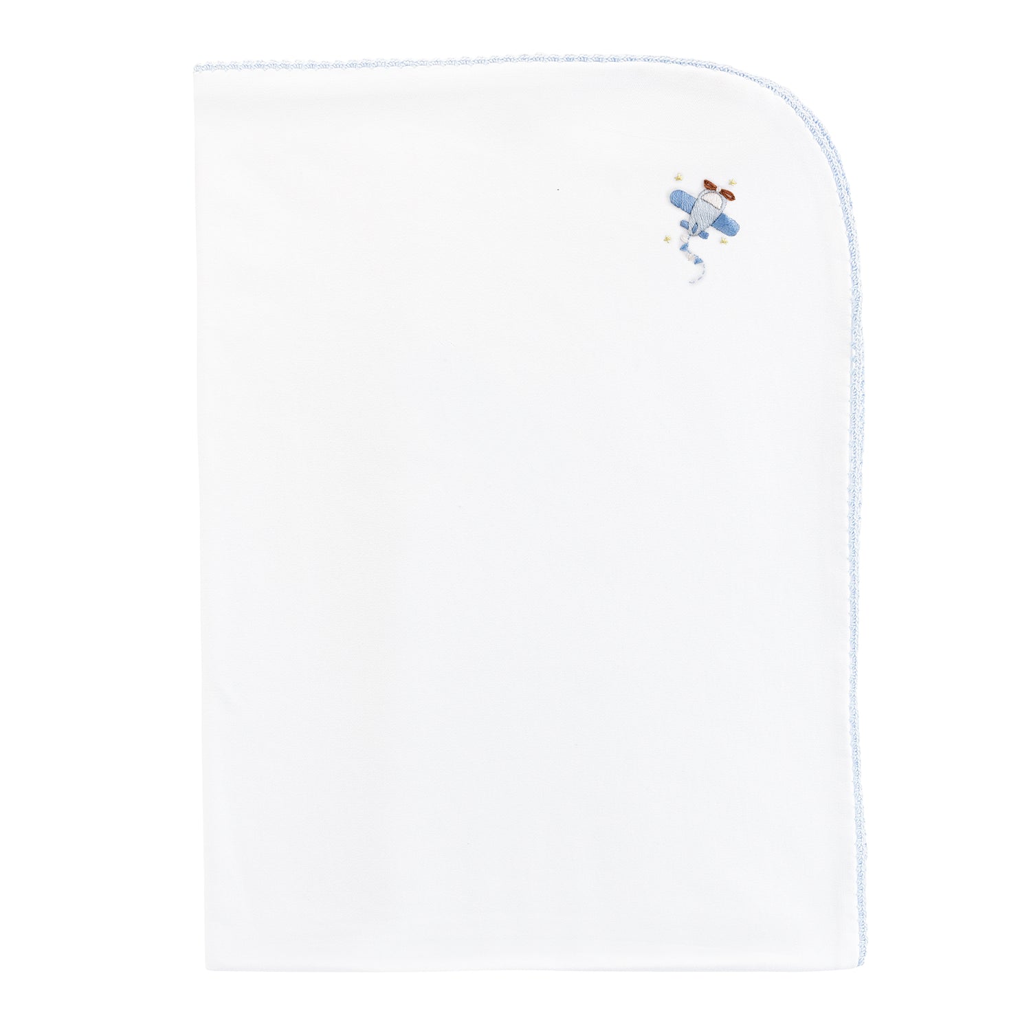Sky Adventure Embroidered Receiving Blanket with Crochet Trim