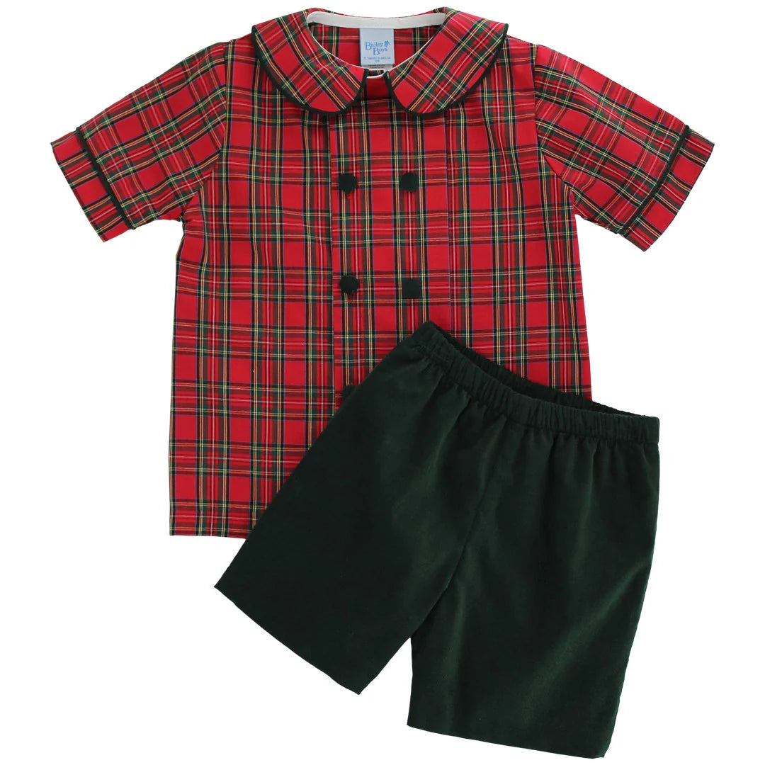 This two piece Dressy Short Set is a celebration ready outfit featuring traditional tartan plaid. With a crisp and structured top and coordinating shorts, it strikes the perfect balance between style and comfort. Designed for ease of movement and holiday flair, it’s a go to look for events and parties and timeless seasonal style.
