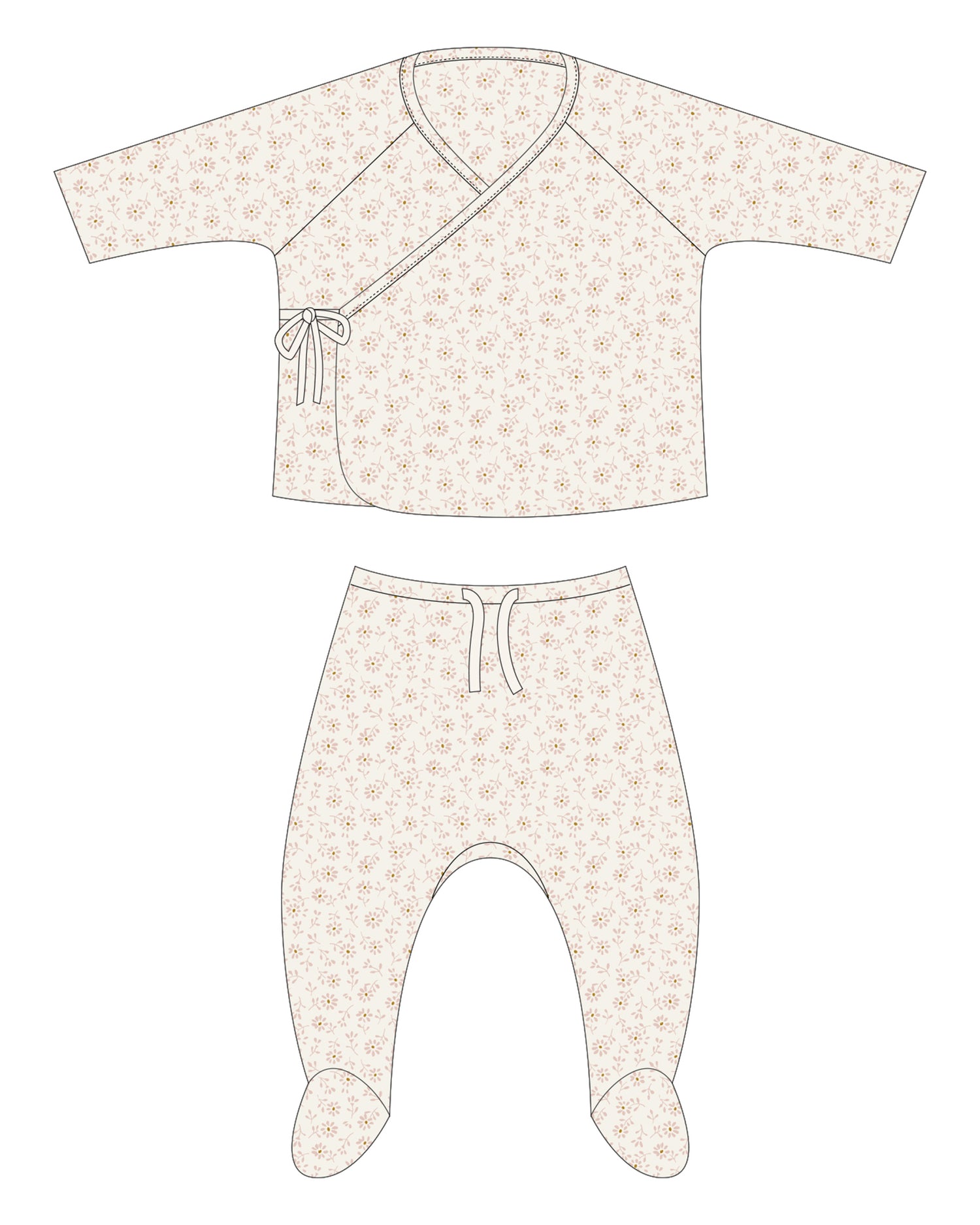 Wrap Top + Footed Pant Set - Ditsy